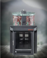 Колосниковая решетка в этой печи для бани на дровах отсутствует. Заложенные дрова разжигают сверху. Не имея над собой препятствий, огонь сразу передает тепло каменке. Пламя постепенно спускается, каждый слой дров прогорает полностью. Система Vortex создает вихревые газовые потоки, не дает пламени подниматься в дымоход. Такие инженерные решения обеспечивают печи высокий КПД, топливо расходуется экономно и эффективно.