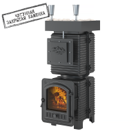 Печь состоит из двух модулей: топочной камеры и закрытой каменки из чугуна. Наиболее термонагруженные участки печи сделаны из жаропрочного чугуна толщиной 20 миллиметров.