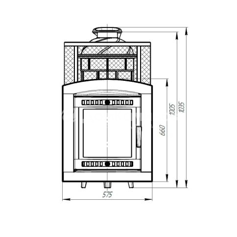 Размеры печи: высота 1035 мм, ширина 575 мм, глубина 805 мм.