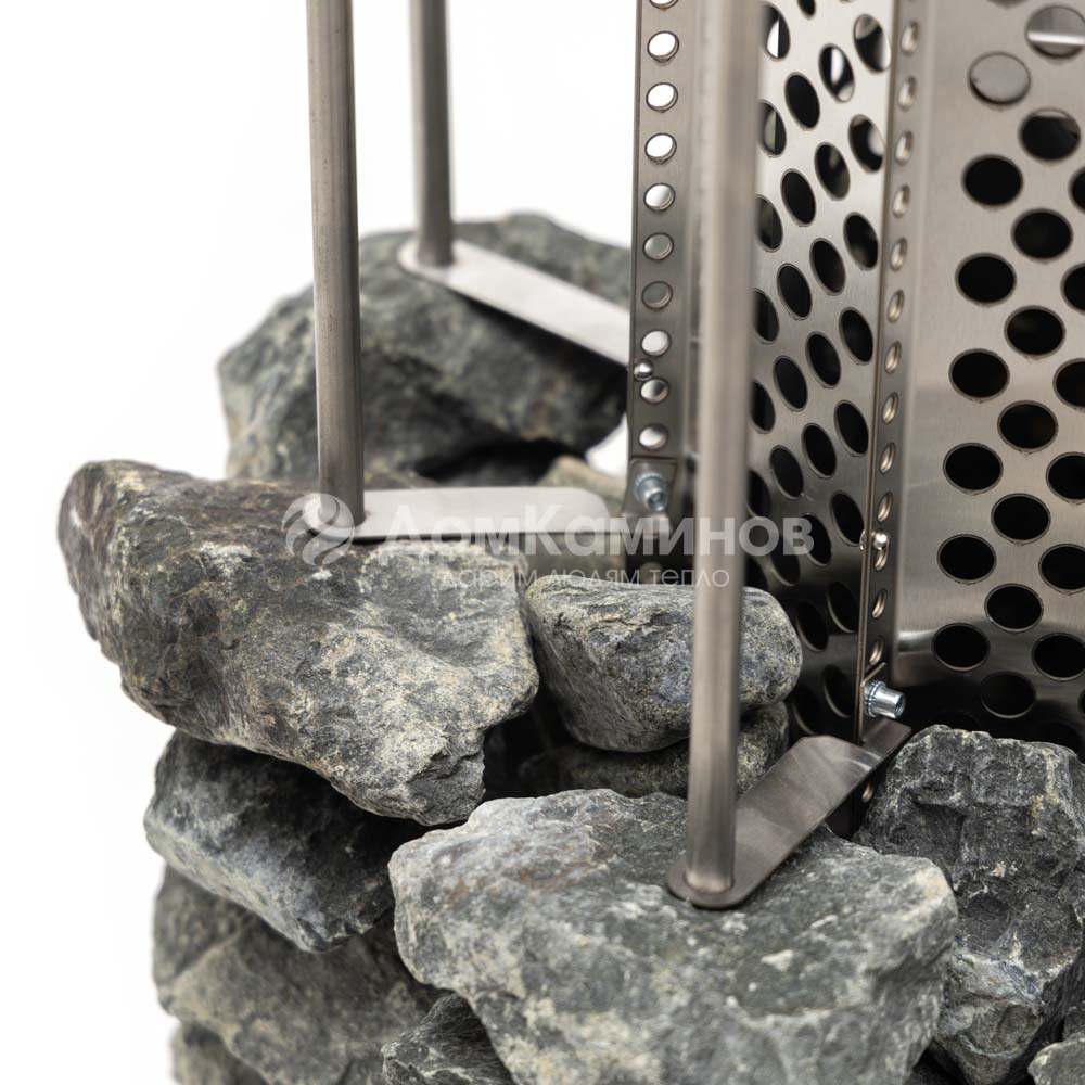 В комплектацию электрокаменки входят два вида камней: камни с перфорацией (отверстием) и цельные камни и фиксаторы шпилек.