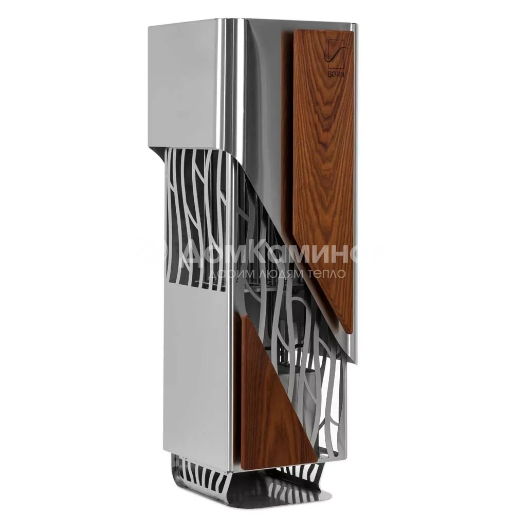 BORN AIR - напольная модель c необычным дизайном для саун средних размеров. Корпус печи BORN AIR выполнен из матовой нержавеющей стали AISI 304 с добавлением деревянного ограждения из ценных пород дерева. Данное сочетание придает каменке величественный вид. Большое количество камней позволяет создать климат, который доставит истинное удовольствие. Поддавая водой на верх печи, можно регулировать качество пара от мягкого до жесткого. В печь вмонтирован ионизатор воздуха с кварцем и гималайской солью, вода испаряется от жара тэнов и увлажняет воздух, делая условия в парилке более комфортными. В парогенератор можно добавить ароматические вещества для усиления впечатлений. Печь BORN AIR - идеальное решение для семейной сауны.