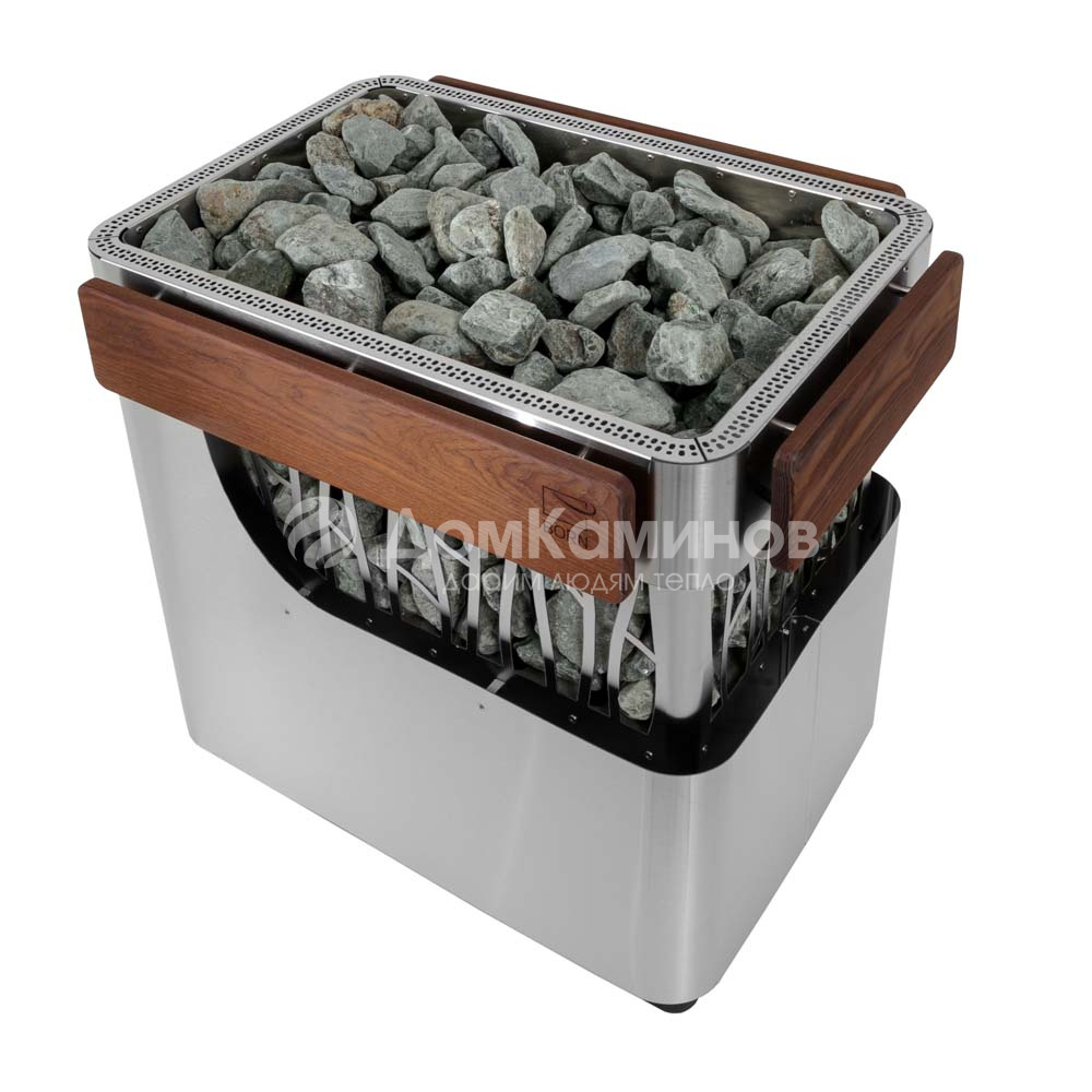 Корпус полуоткрытый. Комбинированные стенки корпуса выполнены в виде решетки из нержавеющей стали AISI 304, за которой хорошо видны камни. В печь вмонтирован ионизатор воздуха с кварцем и гималайской солью, вода испаряется от жара тэнов и увлажняет воздух, делая условия в парилке более комфортными.