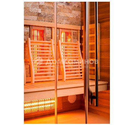 Сборная инфракрасная сауна кабина для установки как в частных, так и в коммерческих объектах. Широкий модельный ряд кабин, рассчитанный на 1-6 человек, обусловлен огромной популярностью именно этой модели. Внутренняя и наружная отделка выполняется из натурального дерева (красного канадского кедра осины или хемлока), а задняя стенка из природного камня, цвет которого подбирается исходя из индивидуальных предпочтений. Передняя стенка ИК-кабины Chaleur De Luxe изготавливается из прочного закаленного стекла, толщиной 8 мм, что визуально увеличивает внутренне пространство. Установка возможна в СПА комплексах, зонах у бассейна, при чем как для частного, так и коммерческого использования. Музыкальное сопровождение процедуры обеспечивают 2 bluetooth динамика, расположенные под полком.