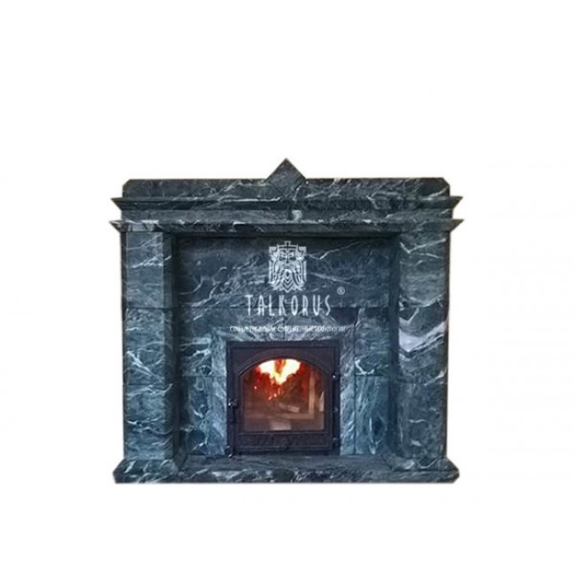 Портал в баню «Тор» выполнен из серпентинита (змеевика), над полками особой формы расположен центральный элемент декора. Величественный внешний вид декоративного портала придаст вашей комнате отдыха в бане особый шарм.