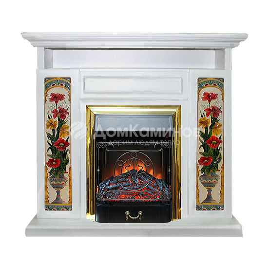 Великолепный, очень парадный, нарядный электрокамин-бар с открывающимися дверками и нишей под каминной полкой, декор - английская викторианская керамика (пр-во Англия), покрытие - белая эмаль. Окрас электрокамина можно выбрать любой по таблице цветов
