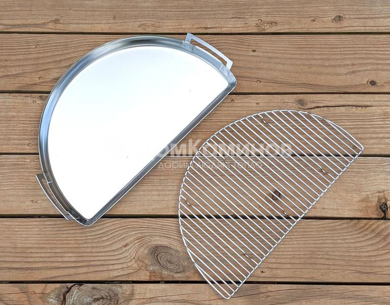Поддон можно использовать в качестве противня или сковороды, достаточно установить его на решётку приготовления над углём. Или вложить в него решётку и поставить на непрямой жар — чтобы запекать продукты, не капая жиром и соками в систему очистки.