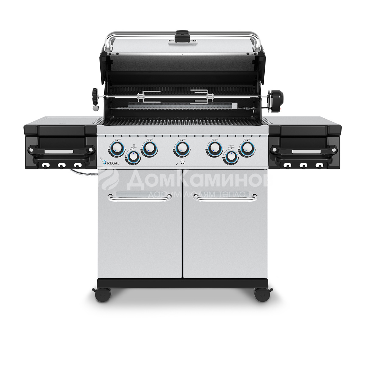 Почти 4000 кв. см. рабочей поверхности с легкостью вмещают до 12 больших стейков, а вертел на электромоторе расширяет и без того немалые возможности.