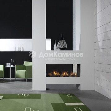Широкий сквозной камин. Современная горелка Step Burner®. Закрытая топка. Требуется подключение к коаксиальному дымоходу.