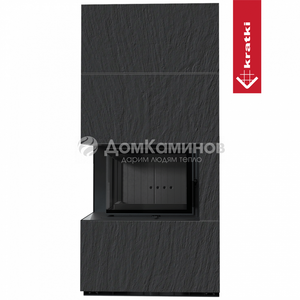 Каминокомплект FLOKI в облицовке NATURALI ARDESIA NERO A SPACCO, угловое стекло слева в Москве