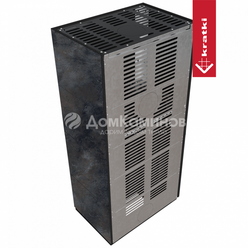 Каминокомплект FLOKI в облицовке OSSIDO NERO, угловое стекло слева в Москве