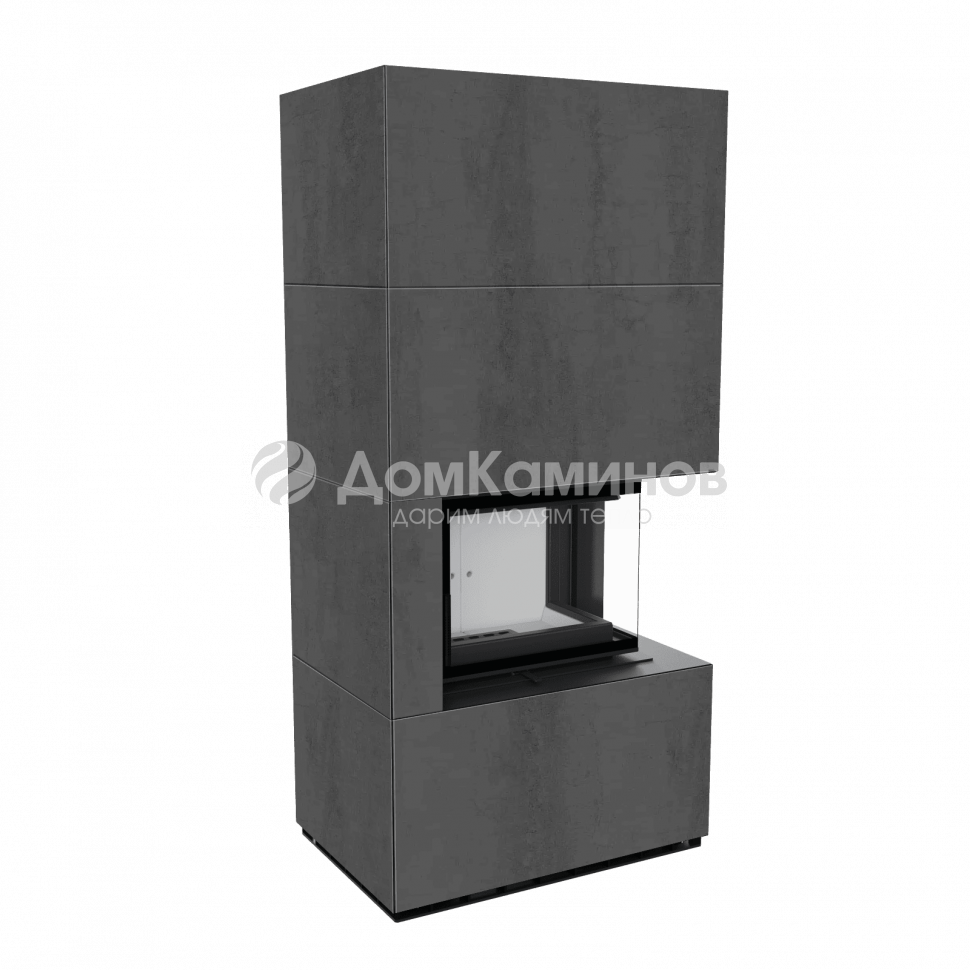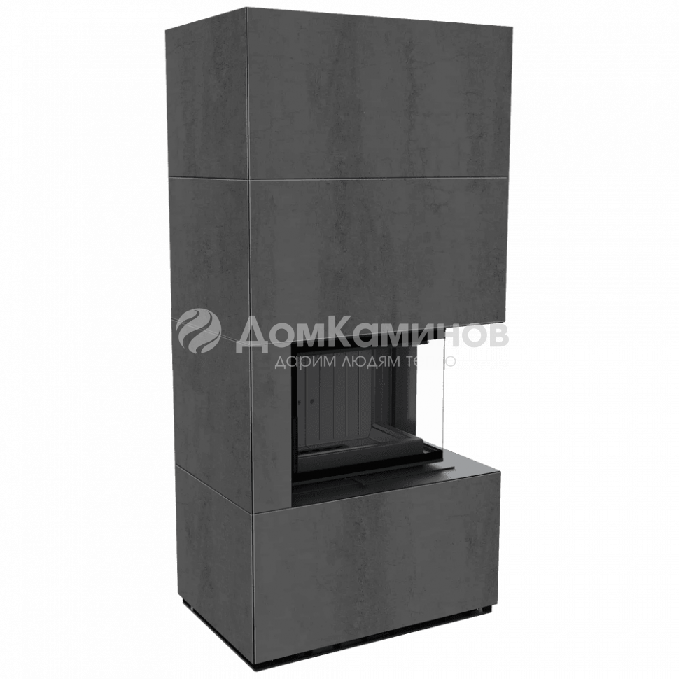 Каминокомплект FLOKI в облицовке NATURALI PIETRA DI SAVOIA ANTRANCITE BOCCIARDATA, угловое стекло справа в Москве