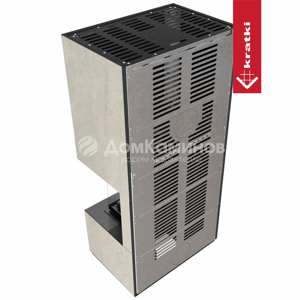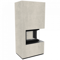 Каминокомплект FLOKI в облицовке NATURALI PIETRA DI SAVOIA PERLA BOCCIARDATA, угловое стекло справа в Москве