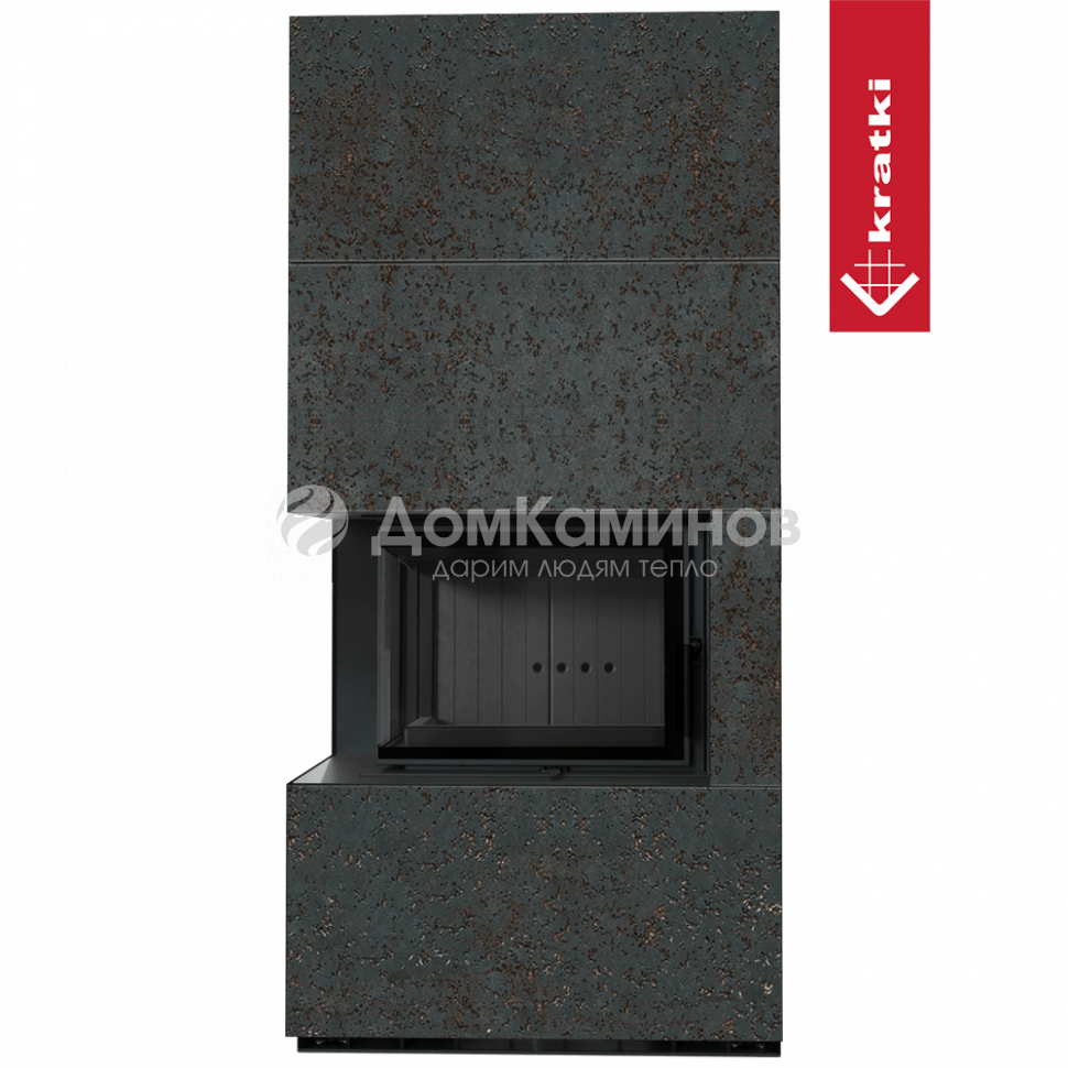 Каминокомплект FLOKI в облицовке OXIDE NERO, угловое стекло слева в Москве