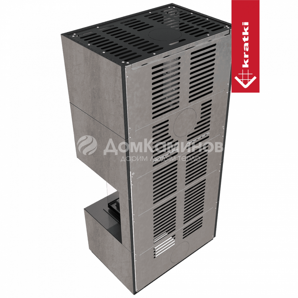 Каминокомплект Kratki PRO FLOKI BOX NATURALI PIETRA DI SAVOIA GRIGIA BOCCIARDATA, угловое стекло справа в Москве