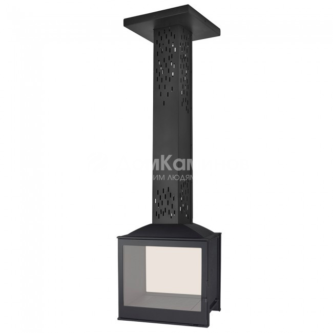 Чугунный подвесной двусторонний камин. Поставляется с трубой и комплектом крепления к потолку. Цвет - черный.
