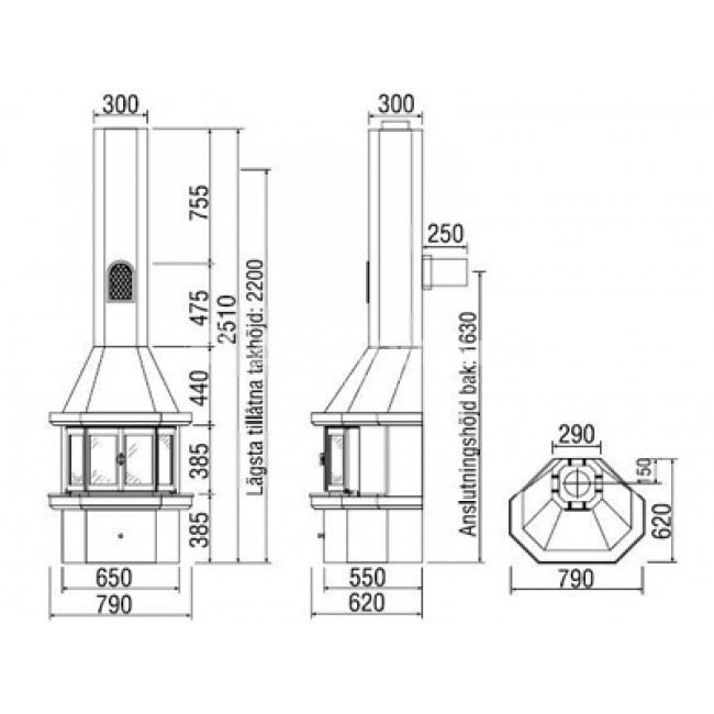 - Защитная плита для пола и дополнительные секции дымохода - опционально