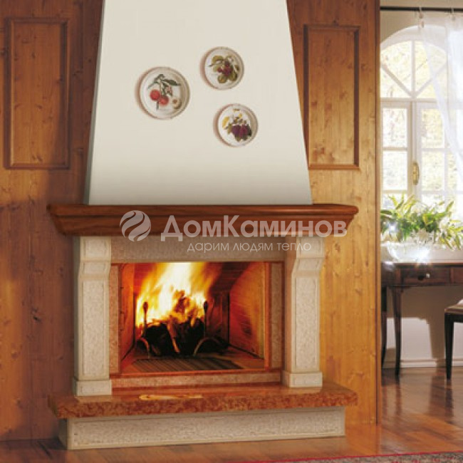 Пристенный или полувстроенный камин Bolzano Totale изготовлен из белоснежного натурального камня. Он украшен полкой из красного мрамора и резной деревянной балкой, облицованной шпоном и покрашенной под орех. Эта элегантная облицовка от производителя Palazzetti создаст атмосферу тепла и уюта в Вашем доме.