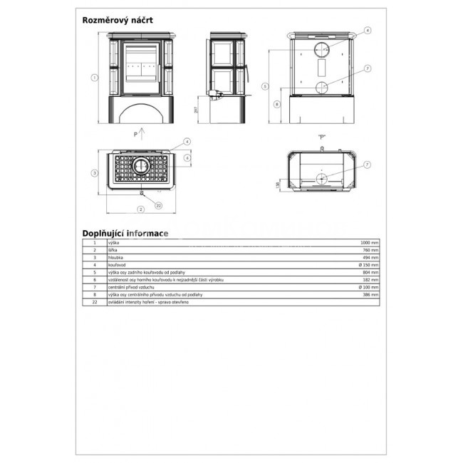 К печи Бавария можно подобрать несколько видов цоколя - металлокерамические (прямой, деревенский) и чугунный. Кафельная Печь, представленная на этой странице, укомплектована теплообменником, который можно подключить к радиаторам отопления. В качестве топлива производитель рекомендует топливную древесину или древесные брикеты. Расход топлива - 2.6 кГ в час. Топочная камера Bavaria футерована вермикулитом, который защищает ее стены и дно от теплового удара и помогает сжигать топливо. Высокая эффективность этого чешского камина обусловлена принципом двойного(тройного дожига), когда в верхнюю часть топки, через решетку фронтона печи и через прорези в задней части топки подается подогретый вторичный и третичный воздух. В результате несгоревшие частицы топлива, находящиеся во взвешенном состоянии в верхней части топки, сгорают практически без остатка.