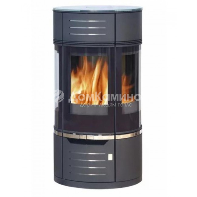 Корпус модели Atrium 6 интересной цилиндрической формы. Редко встречаются, но в этой модели они присутствуют - три оригинальных панорамных стекла, одно из которых является дверцей камина. То есть у пользователя есть возможность наблюдать за «игрой огня» с разных сторон. Именно поэтому этот вариант камина можно установить так, что обзора было больше. Верхняя часть печи камина украшена стеклокерамической плитой. По передней части корпуса на серой стали нанесены горизонтальные глянцевые полоски. Благодаря им, камин выглядит более законченным и модным. Топка печи выполнена из долговечной и высококачественной стали. Дверца и боковые стекла камина имеют огнеупорное стекло, способное работать при температуре более 700 градусов. Оборудование рассчитано на помещение от 60 до 160 кубических метров. Вес печи в 123 кг, не требует отдельного фундамента. Красиво будет смотреть напольное стекло, которое также есть в нашем ассортименте. Каминная топка имеет дополнительные функции: вторичного и третичного дожига. Уменьшая приток воздуха, можно перевести оборудование в режим длительного горения. Система вторичного дожига позволяет обеспечить более экологическое горение. Печь камин оборудована системой подачи воздуха с улицы или подвала, этот способ подключения позволяет избежать задымления при растопке, путем поддержания рабочего давления в помещении, где установлен камин. Кроме того, из обогреваемой печью комнаты не выжигается кислород, а значит, в холода не нужно открывать окна и выпускать тепло, чтобы обеспечить приток свежего воздуха. Печь камин ABX Atrium 6 очень популярна, она наиболее гармонично впишется в современный интерьер. Гарантия 5 лет