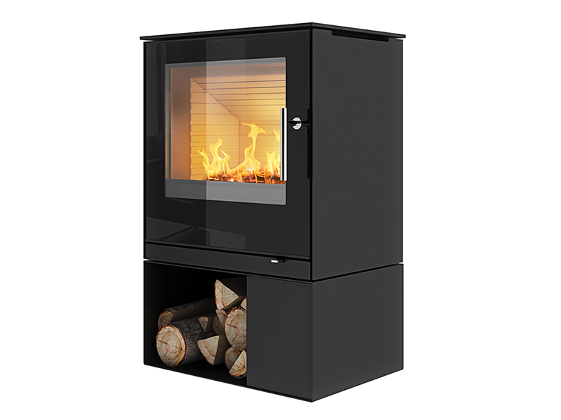экологические характеристики. Ассиметричный дровник очень впечатляет. Доступен вариант с основанием или без.