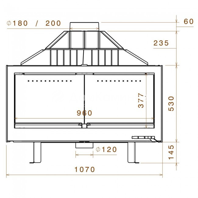 Чугунная каминная топка, боковое стекло справа и слева. Цвет - черный.