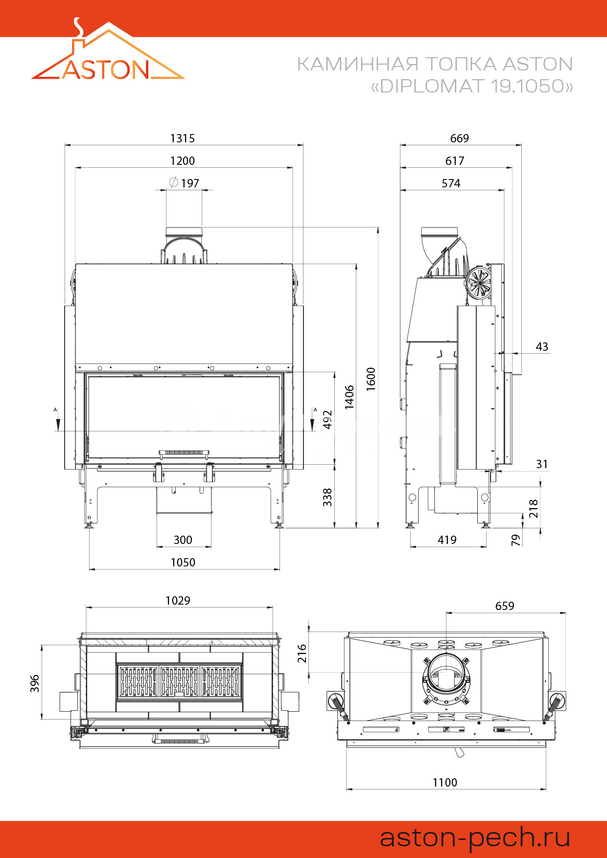 Каминная топка ASTON "DIPLOMAT 19.1050" диаметр дымохода: 200 мм