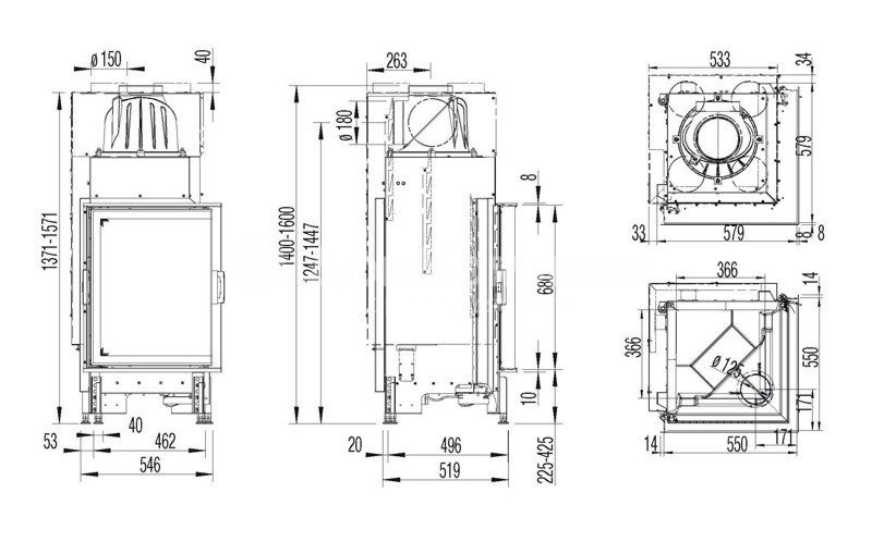 Диаметр дымохода: 180 мм