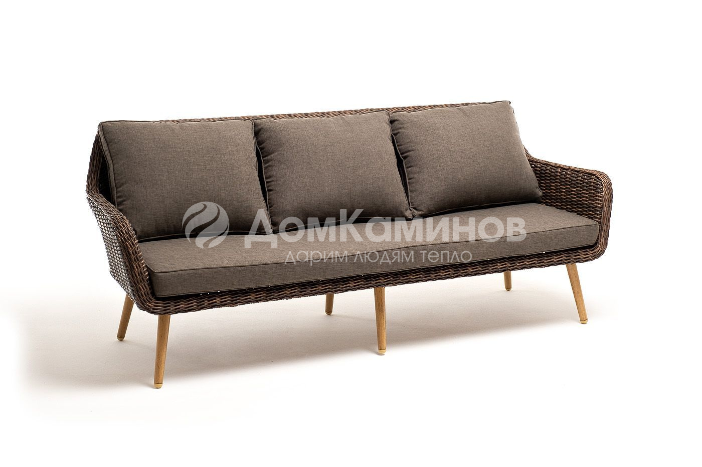 Диван «Прованс» идеально подходит для размещения трех человек. Он имеет алюминиевый каркас, который выдерживает повышенные нагрузки.Размер модели – 1900×800×770 мм. Для оплетки каркаса используется высококачественный искусственный ротанг. Мебель выполнена в бежевом оттенке.Трехместный диван дополняют мягкие подушки в серо-коричневом цвете со съемными чехлами. Тканевые изделия выполнены из прочного полиэстера плотностью 230гр/м2. Материал имеет влагоотталкивающую пропитку.