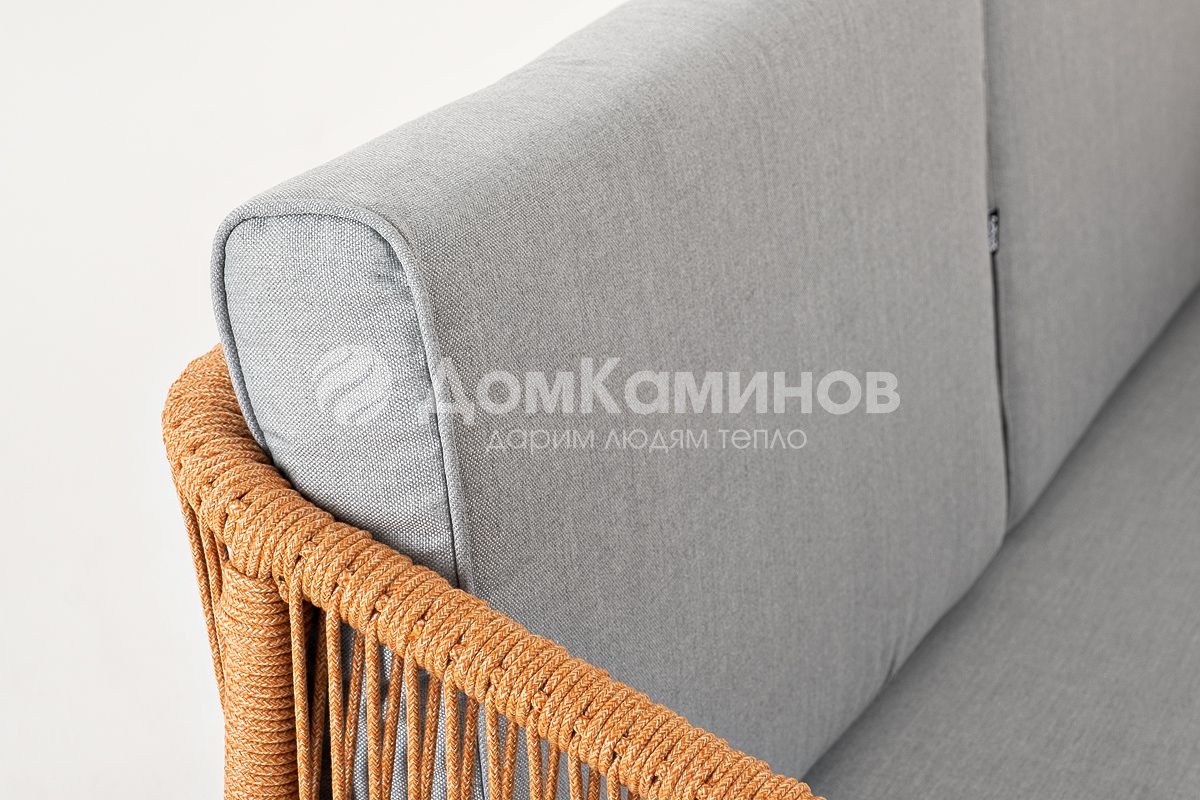 Диван 4SIS Канны 2-местный из роупа, каркас белый шагрень, роуп оранжевый меланж, ткань светло-серая