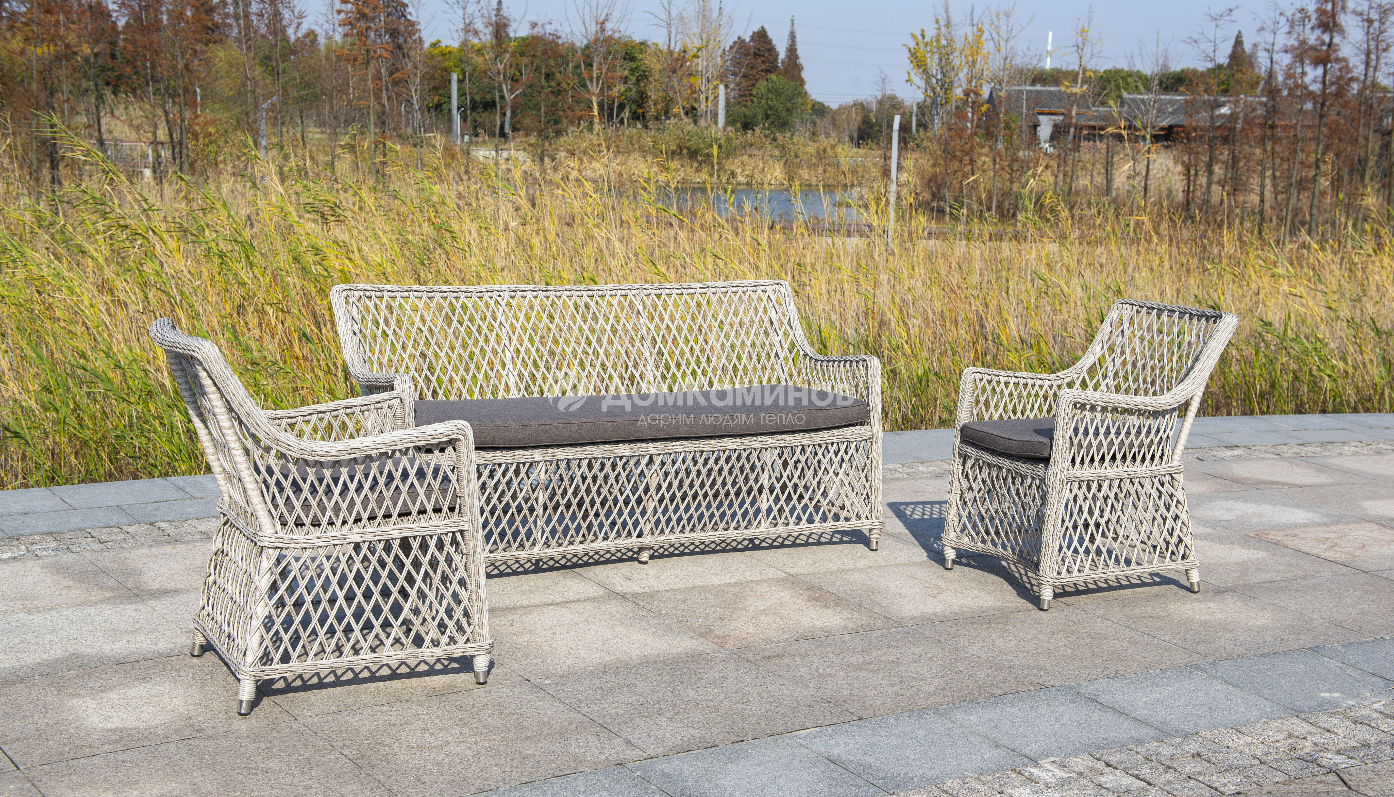 Подушки выполнены из водостойкой полиэфирной ткани для защиты мебели от дождя и солнца
