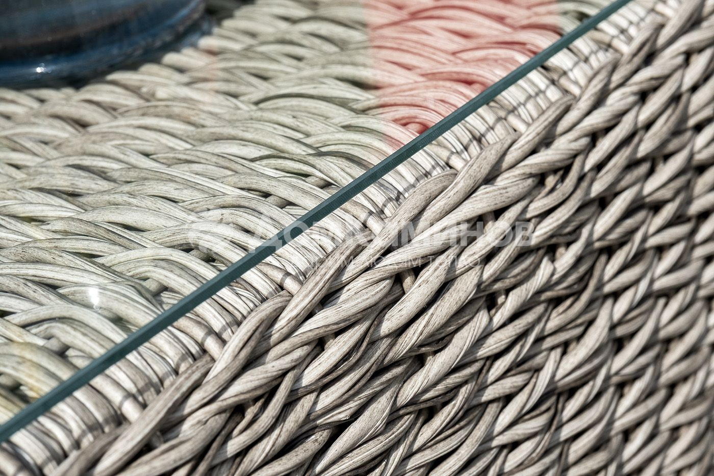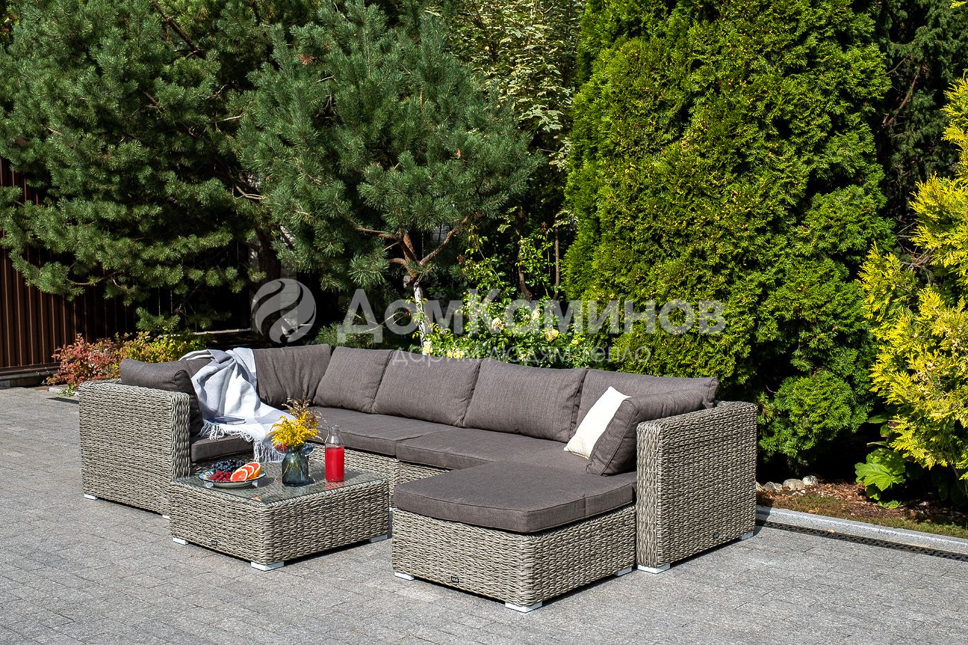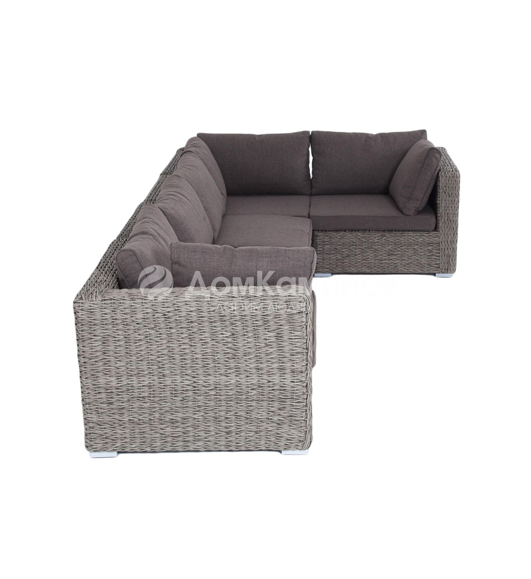 Модульный диван "Лунго" изготовлен из искусственного ротанга вида "гиацинт" коричневого цвета.