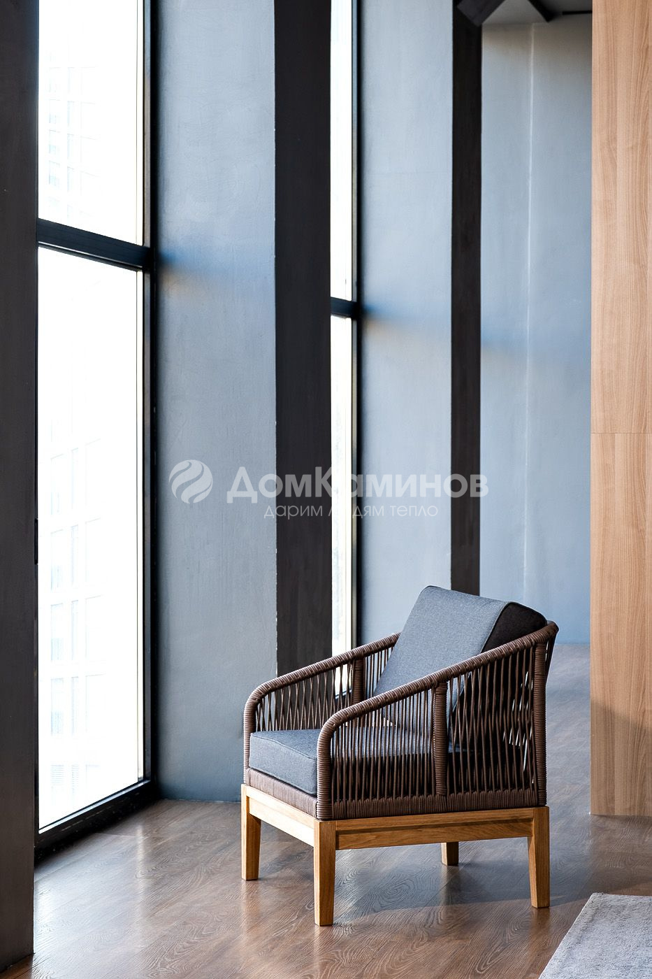 Кресло 4SIS Канны из роупа, основание дуб, роуп коричневый, ткань темно-серая 027