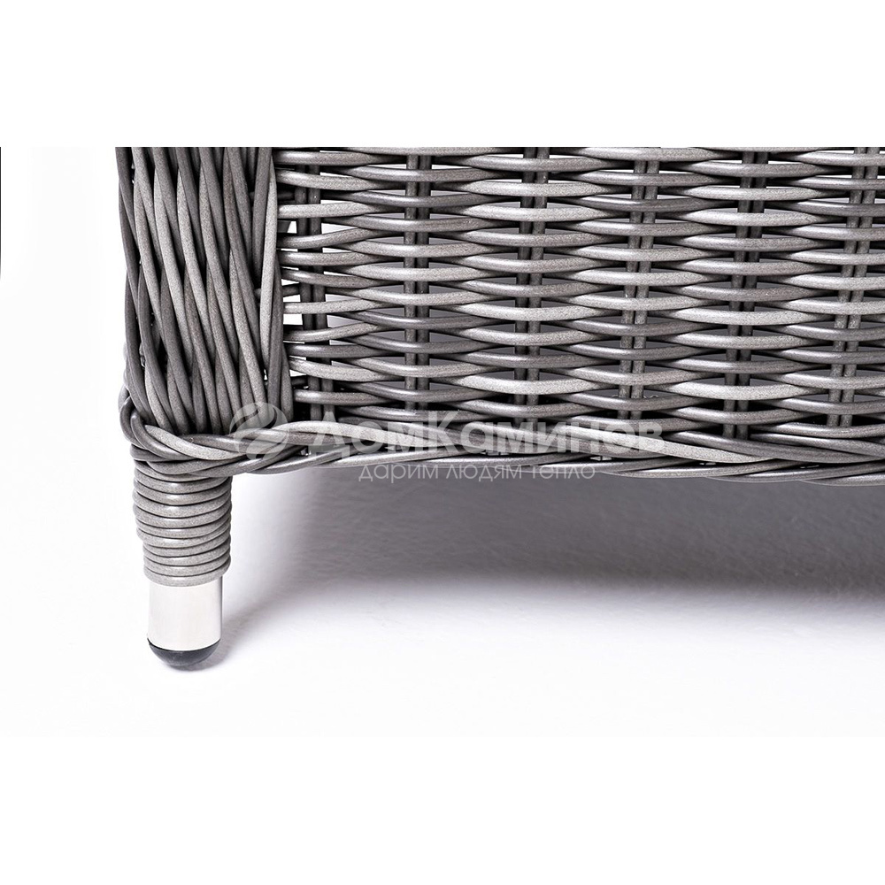 Садовое кресло дополнено практичными подушками для комфортного размещения. Они выполнены в сером цвете из полиэстера, плотность которого достигает 230гр/м2. Материал имеет влагоотталкивающую пропитку.