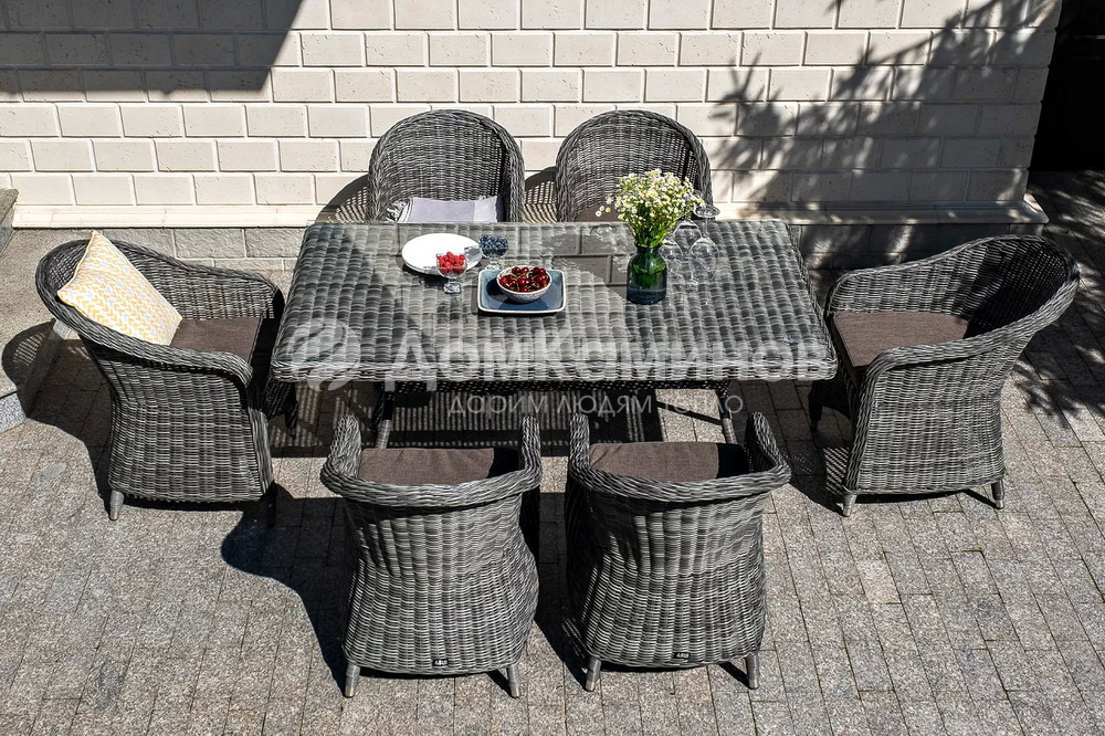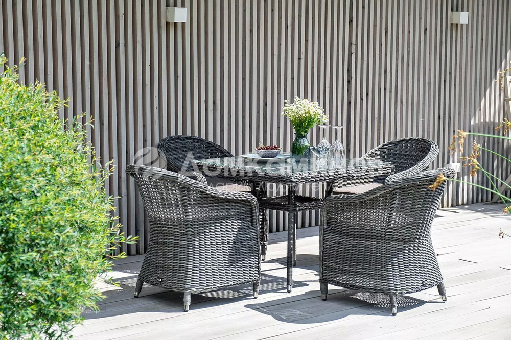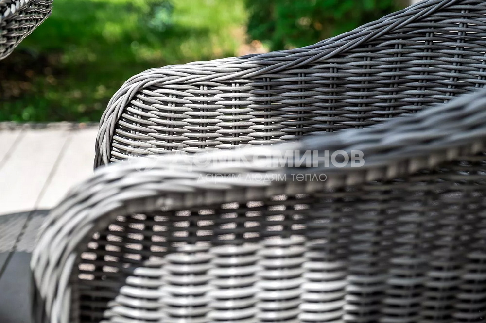 Кресло из искусственного ротанга из коллекции «Равенна» сочетает в себе домашний уют, современный стиль и природные мотивы.Кресло изготовлено вручную. Каркас алюминиевый, а сверху он оплетен круглым искусственным ротангом бежевого оттенка.В комплект включена мягкая подушка темно-серого цвета. Благодаря такой расцветке кресло идеально вписывается в любой интерьер, а также сочетается с другой мебелью, выполненной в натуральных оттенках. Дизайнерское кресло подойдет и для помещений, и для эксплуатации под открытым небом.
