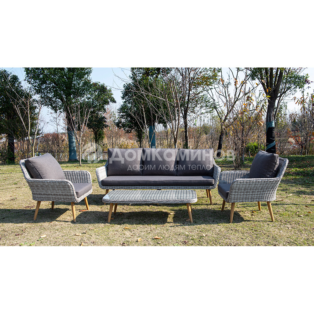Надежность и износостойкость мебели гарантирует каркас, который сделан из качественного алюминия. Ее дополняет ручное плетение, при изготовлении которого используется искусственный ротанг. Представлена модель в бежевом цвете.