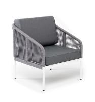 Плетеное кресло «Канны» - идеальный выбор для тех, кто хочет создать уютную атмосферу для комфортного отдыха. Данная модель отличается качеством и практичностью благодаря использованию современных материалов и технологий.Каркас кресла изготовлен из прочного алюминиевого сплава и окрашен в белый цвет, который предотвращает возникновение коррозии и обеспечивает долгий срок службы. На боковинах кресла выполнена оплетка из роупа светло-серого оттенка. Такое плетение обладает высокой стойкостью к износу и долговечностью, сохраняя свои свойства даже при активном использовании.Особое удобство кресла обеспечивают мягкие подушки со съемными чехлами светло-серого цвета.Габаритные размеры плетеного кресла «Канны» составляют 700x700x750 мм, что позволяет установить его даже на небольших площадях и комфортно разместиться для приятного отдыха.