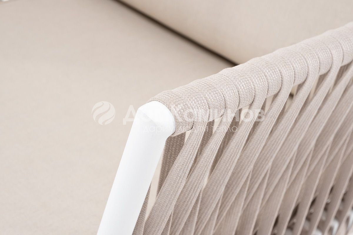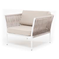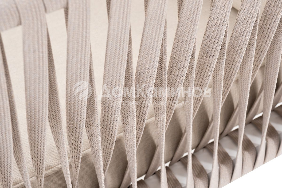 Плетеное кресло "Касабланка" с подушками в комплекте.Кресло имеет алюминиевый каркас, окрашенный порошковой краской в светло-серый (RAL7035) цвет. Боковины каркаса вручную оплетены роупом - эластичными синтетическими лентами, изготовленными из высокопрочных полиэфирных волокон. Цвет оплетки - серо-коричневый.Подушки со съемными чехлами, которые обработаны влагоотталивающей пропиткой. Материал - 100% полиэстер, плотностью 230гр/м2.Размер садового кресла: 850x800х700 мм.