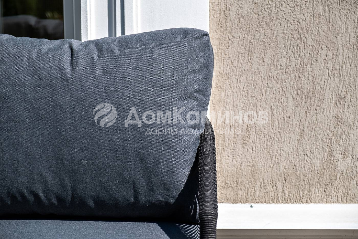 Кресла и диван идут в комплекте с мягкими подушками в чехлах темно-серого цвета.