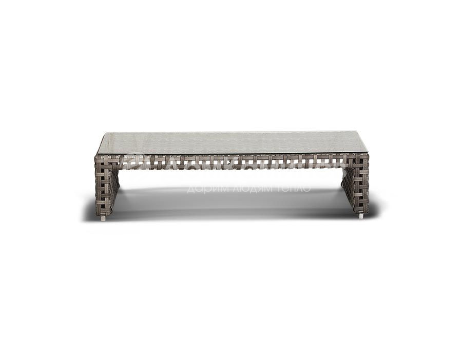 Корпус мебели изготовлен из прочного алюминия и оплетен вручную плоским искусственным ротангом. Цвет серый.
