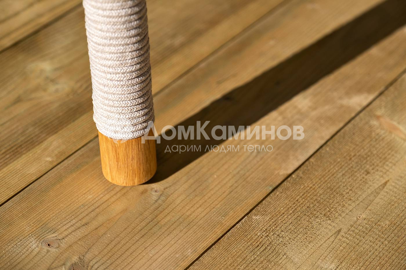 Каркас уличной мебели выполнен из износостойкого алюминия. Его дополняет темно-серая ручная оплетка, изготовленная на основе эластичных синтетических лент из полиэфирных волокон высокой прочности (роупа).