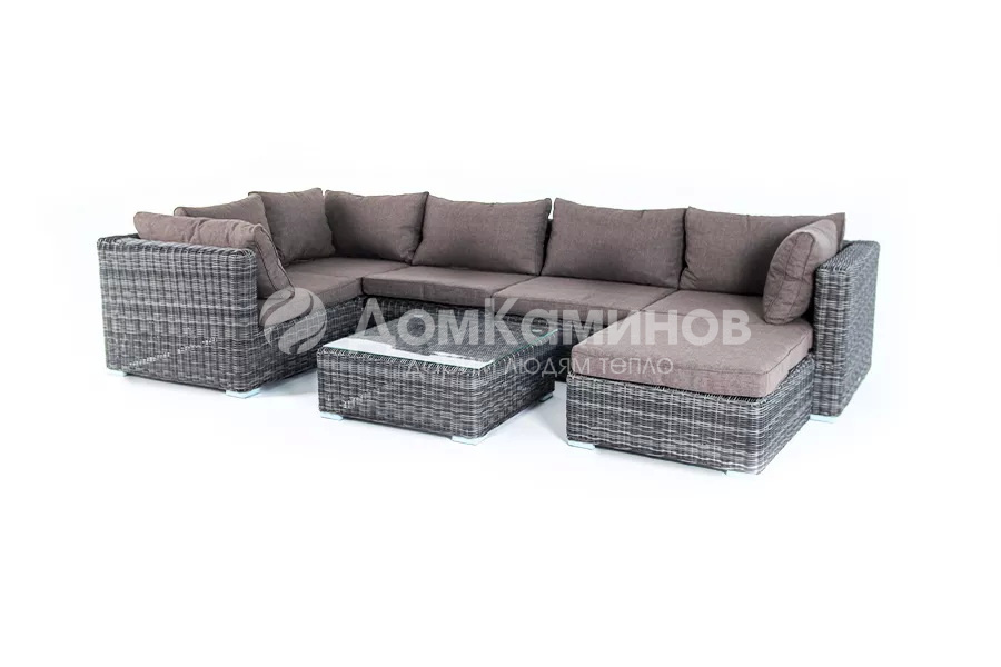 Основа выполнена из алюминиевого каркаса, декорированного вручную оплеткой графитового цвета. Комплектацией предусмотрены подушки, выполенные из полиэстера с влагоотводящей пропиткой.