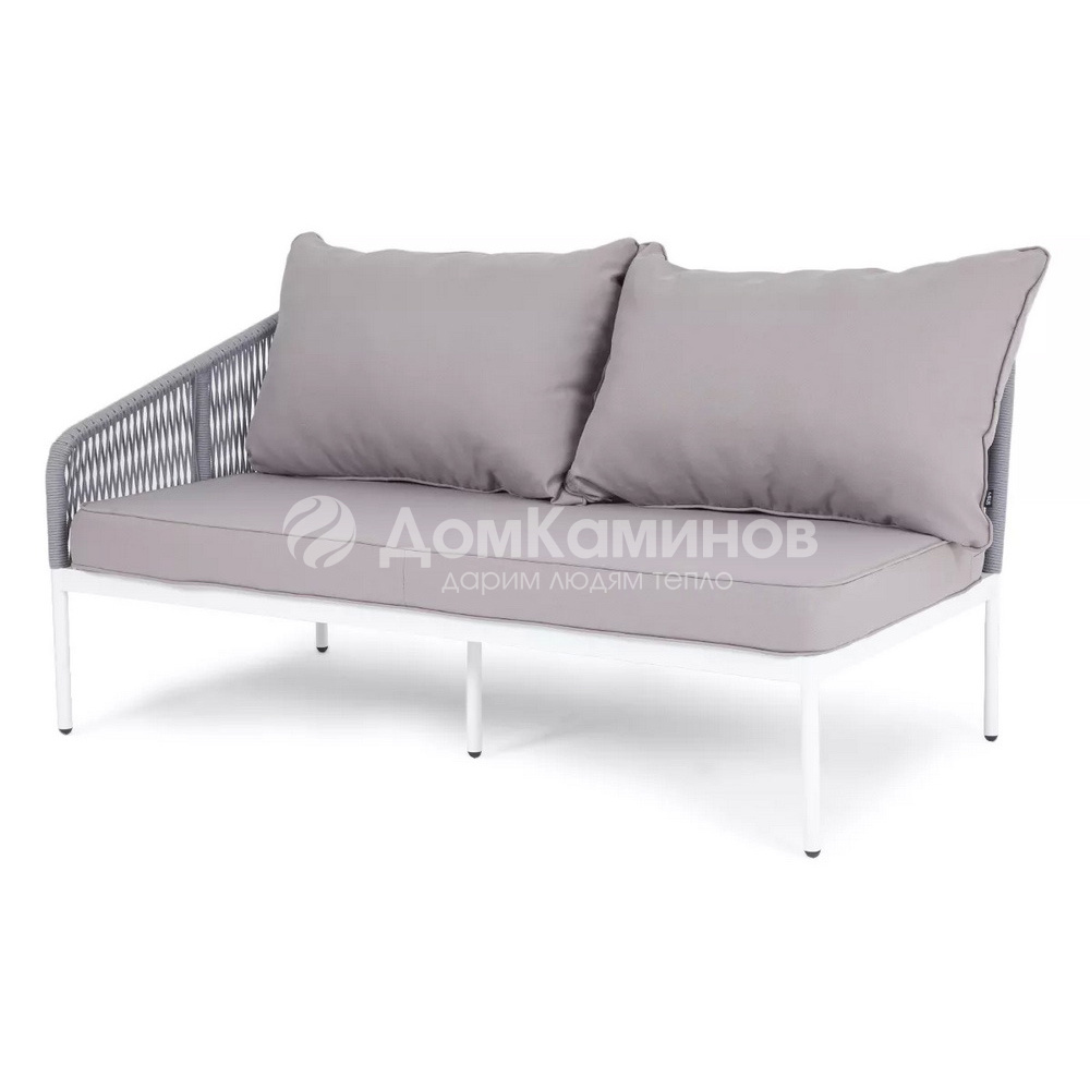 Диванный модуль "Канны" правосторонний из комплекта трансформирующегося одноименного дивана.Модуль имеет алюминиевый каркас, окрашенный порошковой краской в белый цвет. Боковины каркаса вручную оплетены роупом - эластичными синтетическими лентами, изготовленными из высокопрочных полиэфирных волокон. Цвет оплетки - светло-серый.Подушки состоят из наполнителя и съемных чехлов. Материал - 100% полиэстер, плотностью 230гр/м2.