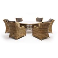 Обеденная группа на 6 персон «Эспрессо» из ротанга. В комплекте: большой круглый обеденный стол (1500×1500×750 мм.) и 6 кресел (650×900×920 мм).