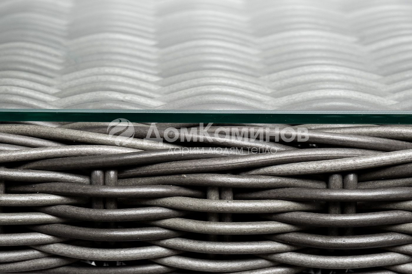 Обеденная группа «Амароне» относится к числу садовой мебели для обустройства открытых террас и веранд.В комплект входят:- обеденный стол «Латте» – 1600×900×750 мм.- шесть стульев «Сицилия», размер каждого – 590×640×820 мм.Алюминий используется при создании прочного каркаса мебели. Оформлен ручным плетением из круглого искусственного ротанга графитового цвета.На креслах расположились мягкие подушки серо-коричневого оттенка. Их чехлы изготовлены из полиэстера, плотность которого 230гр/м2. Ткань проходит обработку влагоотталкивающими составами.В качестве рабочей поверхности плетеного обеденного стола выступает стеклянная столешница, которая крепится при помощи вакуумных силиконовых держателей и поставляется в собранном виде.