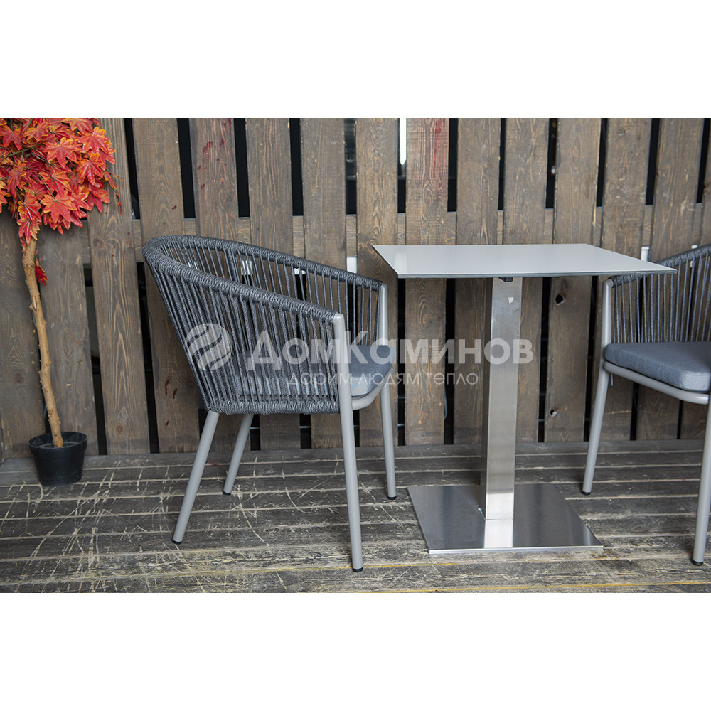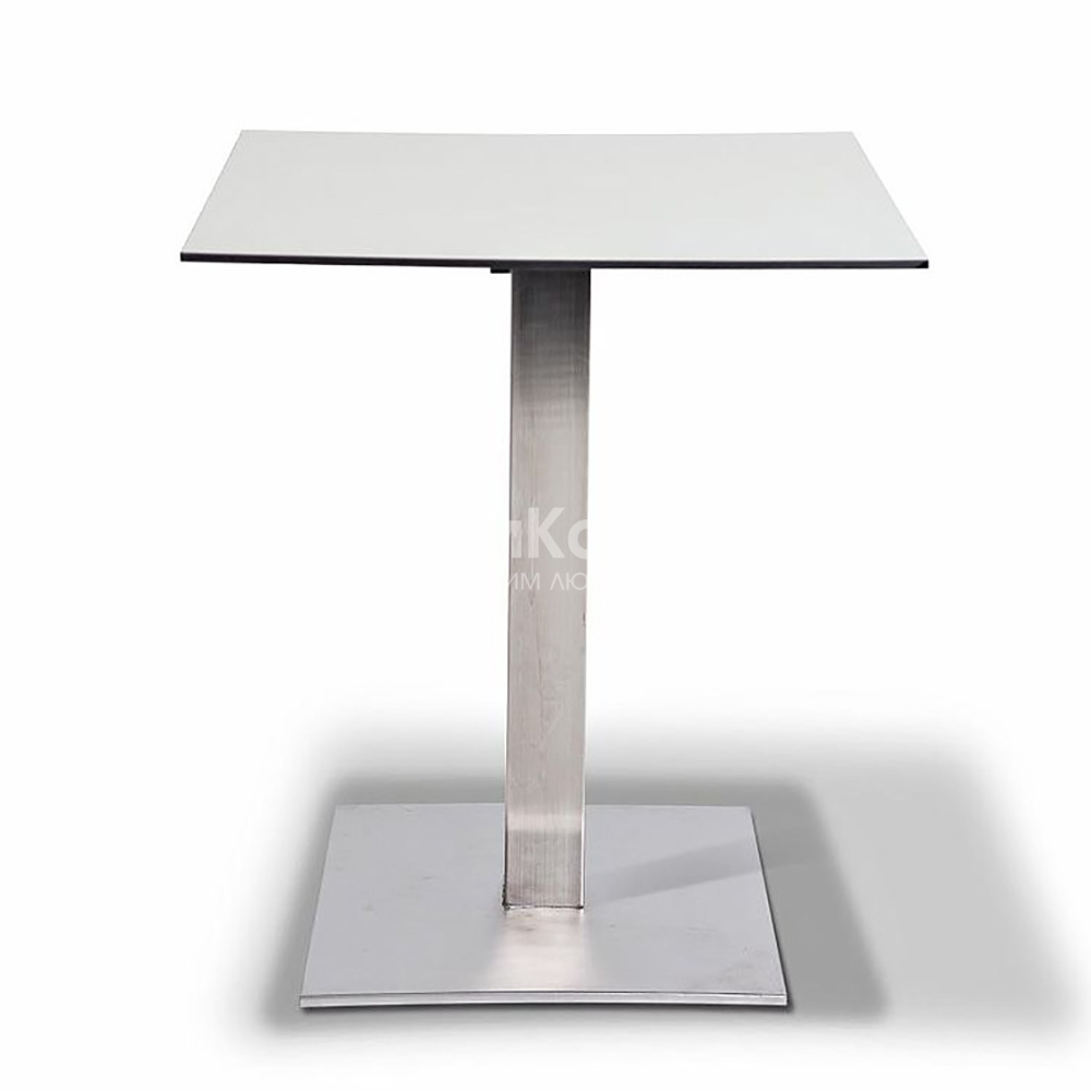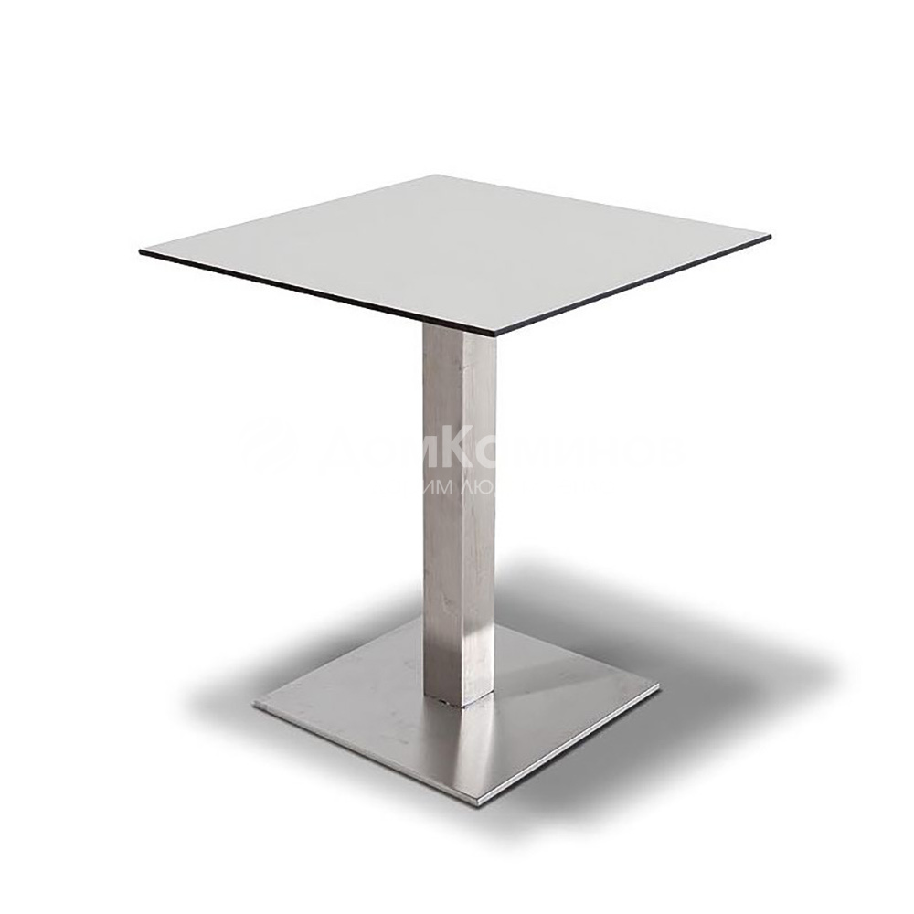 Современный дизайнерский стол «Каффе» с квадратной столешницей, выполненной из высококачественного монолитного компакт-пластика HPL, толщиной 12 мм. Цвет поверхности стола – молочный.Основание изготовлено из нержавеющей стали без покрытия. Светлые оттенки стола хорошо впишутся в минималистичный интерьер. Благодаря использованию материалов, устойчивых к влаге, ультрафиолету и перепаду температур, стол можно использовать на открытом воздухе и в местах с повышенной влажностью.Габаритные размеры: 640х640х750 мм. Также можно подобрать дизайнерские стулья из нашего ассортимента, чтобы создать зону отдыха.
