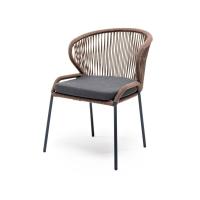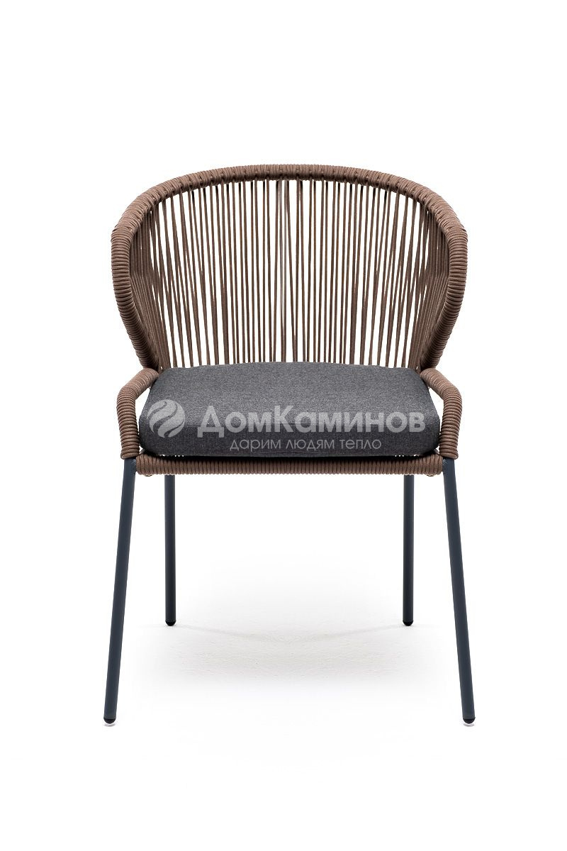 Стул 4SIS Милан из роупа, каркас алюминий серый муар, роуп коричневый, ткань темно-серая 027