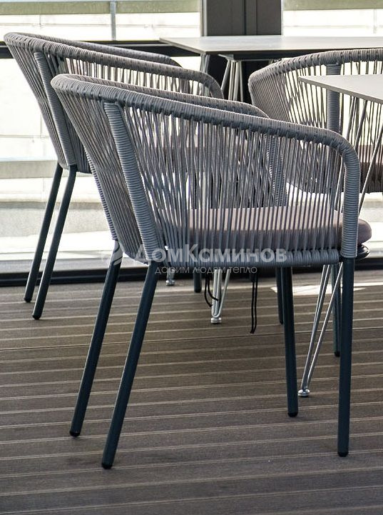 Стул "Марсель" предназначен для организации обеденной зоны или зону лаунж.Выполнен из алюминиевого каркаса темно-серого (RAL7024) цвета. Оплетка - современный материал "роуп", которым каркас оплетался вручную.Цвет оплетки - светло-серый.В комплекте одна подушка с влагоотталкивающей пропиткой. Чехол светло-серого цвета съемный, можно стирать в стиральной машине с использованием порошков.Размер стула: 570х620х800 мм.В нашей коллекции также представлен плетеный стул "Марсель" в темный и светлых оттенках