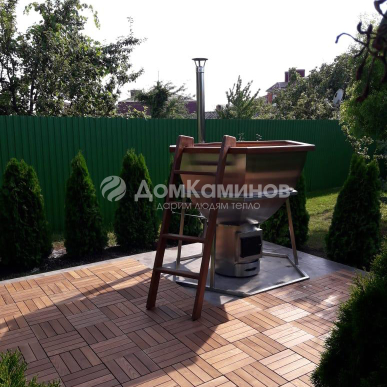 10-гранный банный чан на подставке с печью – практичное и выгодное приобретение для дома, дачи, коммерческого предприятия. Если отсутствие печки в других моделях на подставке может создавать определенные сложности для пользователей, этот чан предлагается в более удобной комплектации. Вам не нужно расчищать и подготавливать площадку для костра, заказывать отдельно топку – дровяная печь идет в комплекте! Она способна прогреть воду в чане даже в самую холодную зиму. Благодаря этому, принимать целебные ванны на свежем воздухе можно круглогодично.