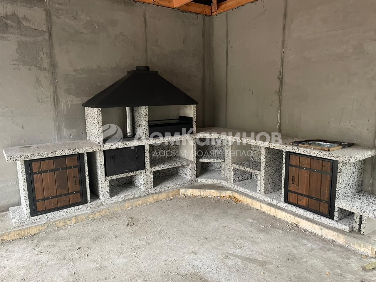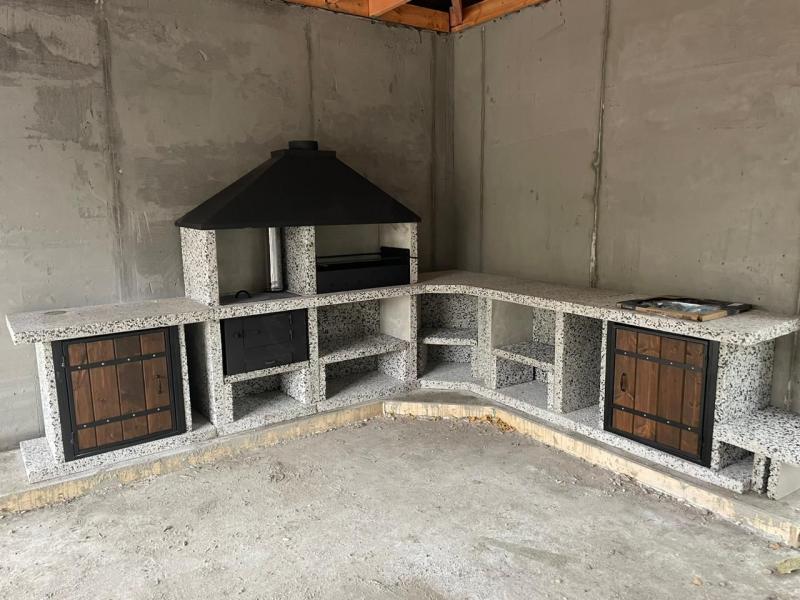 Кухня барбекю из шлифованного бетона с добавлением мраморной крошки